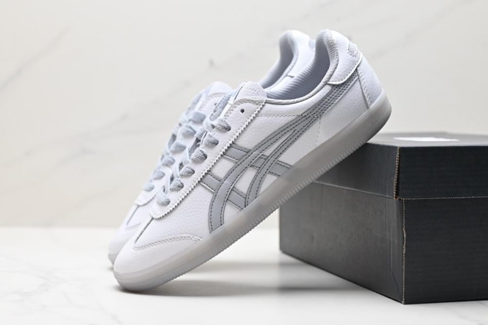 A timeless classic, the Tokuten sneakers from Onitsuka Tiger feature a clean design, in grey. Made from sturdy leather, they're adorned with the brand's iconic Tiger stripes and are built on a reliable fum rubber sole for optimal grip.