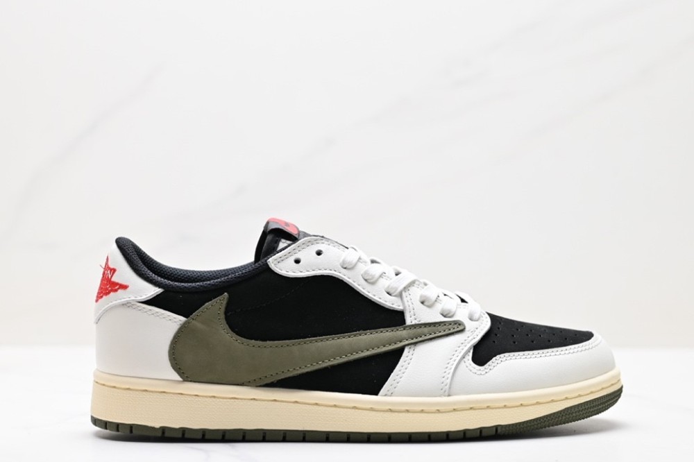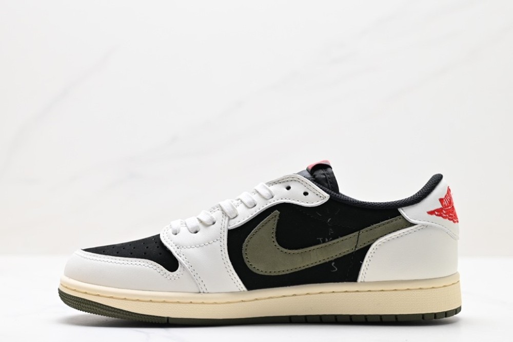 The Air Jordan 1 Retro Low OG SP 'Travis Scott Medium Olive' is a stylish sneaker that features a unique blend of Sail and Black colors. It is inspired by Travis Scott's signature details, such as the oversized backward Swoosh on the lateral side, tongue, inner panel and insole with the Cactus Jack branding. The sneaker is finished with the iconic Air Jordan Wings on the right heel and Scott's rough-drawn face on the left heel. It is perfect for any street style look and is made with a rubber sole for comfort and durability. The 'Travis Scott Medium Olive' is the latest addition to the Air Jordan 1 series and is sure to be a hit.